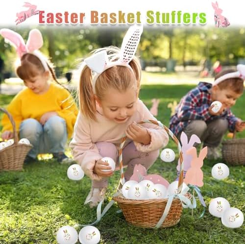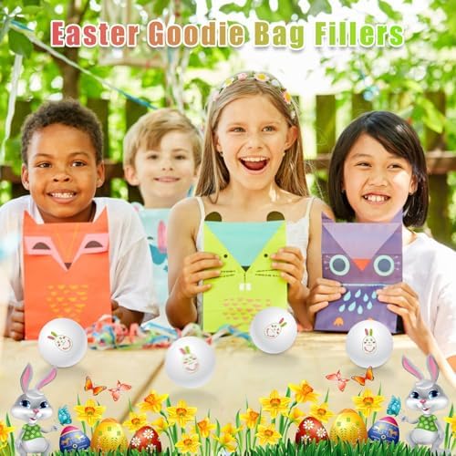 30 high-quality Easter ping pong balls with a diameter of 1.57 inches/ 40 mm, lightweight and easy to carry. Adorable cute bunny printed design, perfect for Easter egg fillers, party favors, Easter basket stuffers, and goodie bags.