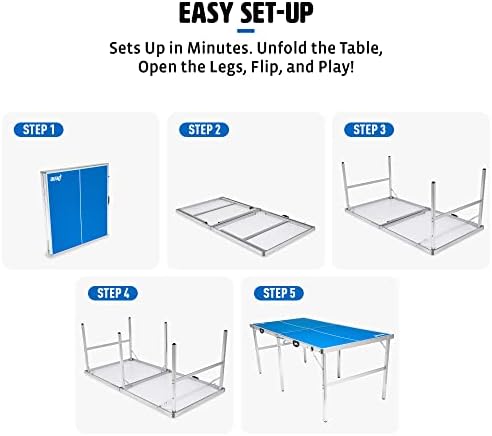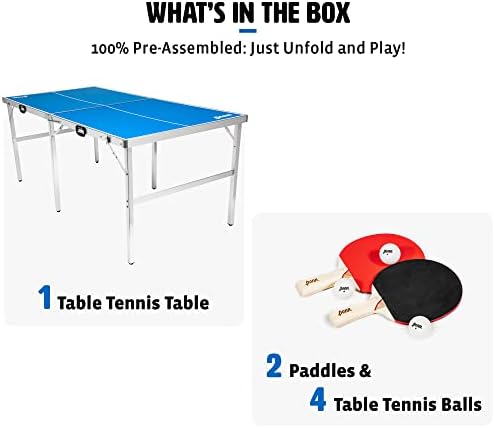 – Simply unfold the table, attach the included ping pong net, and start playing.