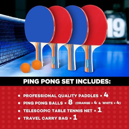 What You Get: The ping pong paddles set includes 4 high-performance paddles, a portable retractable ping pong net, 8 ping pong balls, and a carry bag. It’s perfect for family members or ping pong enthusiasts to enjoy the game anytime and anywhere.