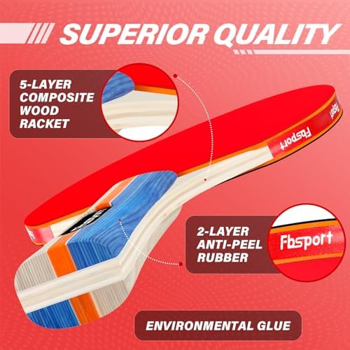 FBSPORT Ping Pong Paddle Set, Table Tennis Set with 4 Rackets and 8 Balls – Indoor/Outdoor Games for Beginners and Exper