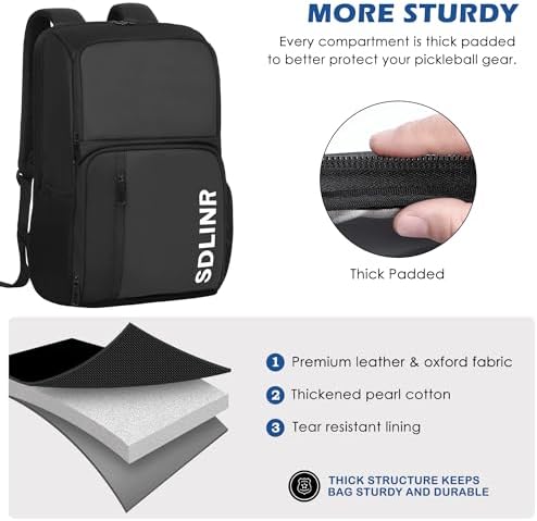 PREMIUM MATERIAL AND THICKER DESIGN – Constructed with waterproof, non-tear Oxford material and quality hardware for maximum durability. Each compartment is thickly padded to better protect your pickleball equipment.