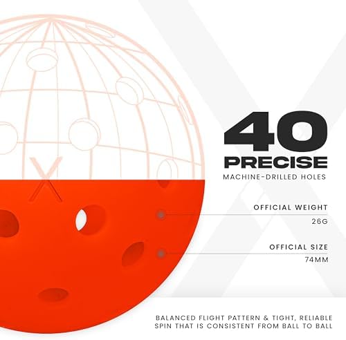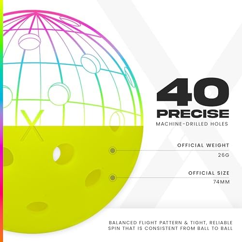 PRECISION DESIGN: X-40 pickleballs are constructed with 40 precise, machine-drilled holes, creating a balanced flight pattern and tight, reliable spin that remains consistent across all balls. This ensures that every throw performs as expected.