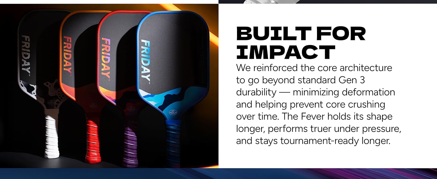 Friday Fever Paddle, Raw Carbon Fiber, Gen 3 Construction Friday Fever Paddle, USAP PBCoR .43 Certified, Dual-Edge Foa