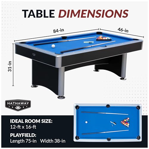 2-IN-1 POOL AND PING PONG TABLE COMBO – switch between games effortlessly with the Hathaway Maven 7ft pool and ping pong table combo. Perfect for family game nights and space-saving in various rooms.
