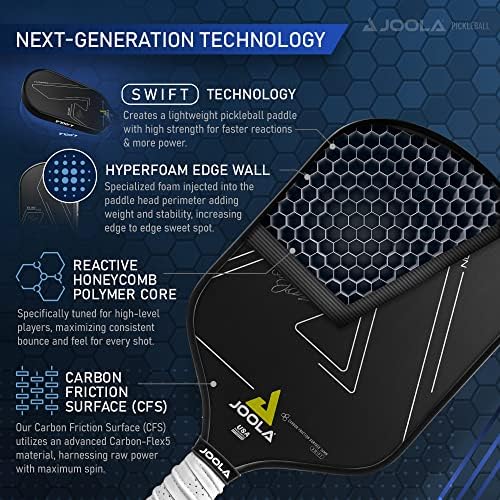 Designed specifically for high-level pickleball, JOOLA’s paddles maximize consistency in bounce and feel, essential for every shot. Minimized vibrations provide better control and reduced fatigue, enabling you to play longer without getting worn out.
