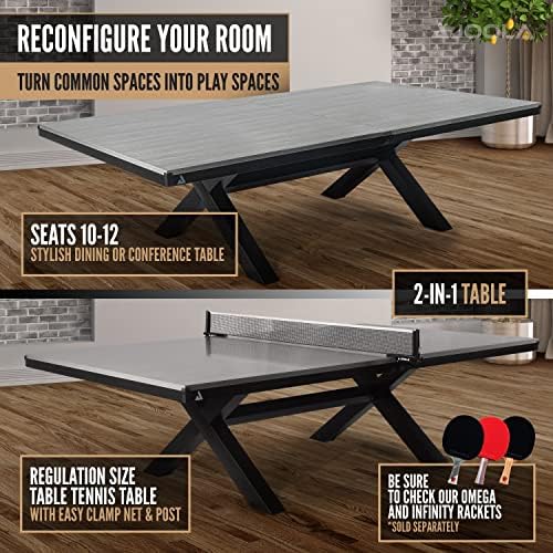 Transform any room into a game room with ease. The ping pong net clamps on quickly, allowing you to switch between a table tennis table and a versatile 12-seated conference table, 10-seated dining room table, or a stylish bar table.