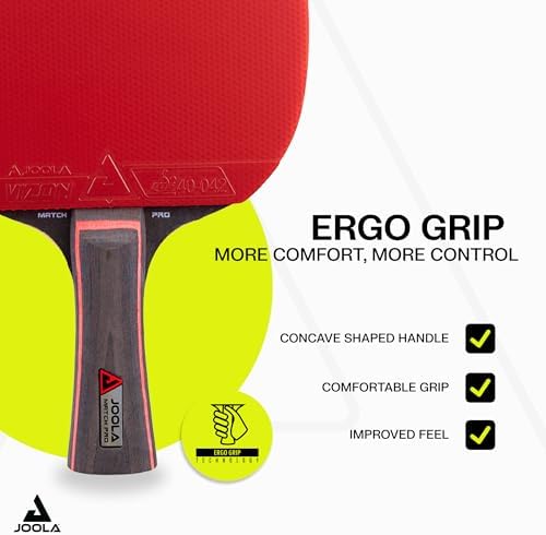 Experience the ultimate in competitive play with the JOOLA Match Pro Table Tennis Rackets. Perfect for transitioning from social to competitive play, these rackets offer a professional feel with comfortable handle grips and a professional layer composition.