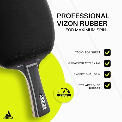 Equipped with JOOLA Vizon rubber and Speed Drive technology, these table tennis paddles provide optimal sponge density for quick attacking shots and precise offense, all while offering exceptional control. Beloved by professional players and enthusiasts alike.