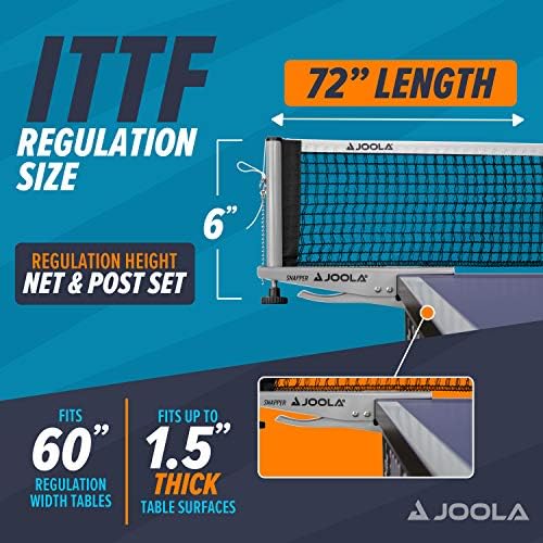 JOOLA Snapper Silver Portable Table Tennis Net and Post Set – Professionals and Enthusiasts, Home and Tournament Use, 72