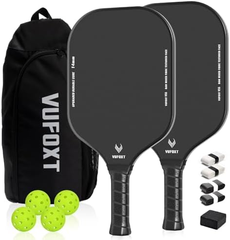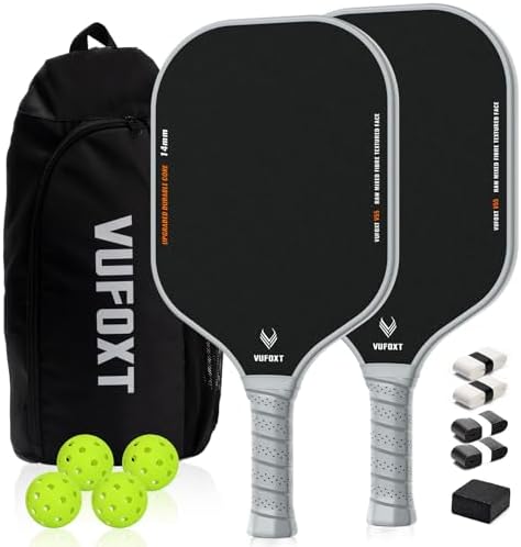 【Lightweight & Wide Design】With a 7.9 inches widened surface, these paddles significantly increase the ball contact area. This design provides more sweet spots for the perfect shot. These paddles are suitable for players of all levels. The medium weight of 7.8 oz ensures a balance of power and control.
