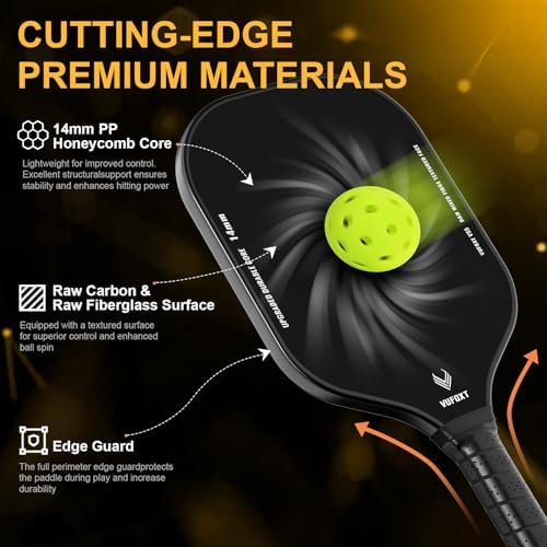 【Premium Raw Carbon & Fiberglass Surface】Our pickleball paddle features a raw carbon and fiberglass surface with a unique textured design. This design provides exceptional spin control, helping you easily manage the spin and direction of the ball. Whether you’re serving, dinking, or transitioning between offense and defense, the precise spin gives you full control over every shot.