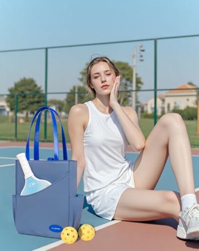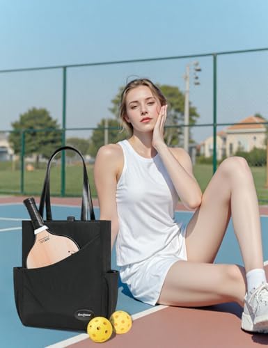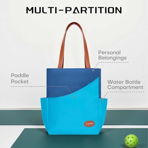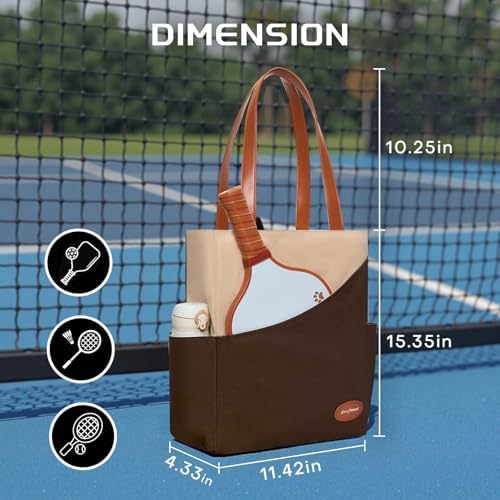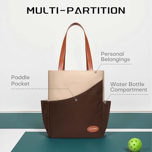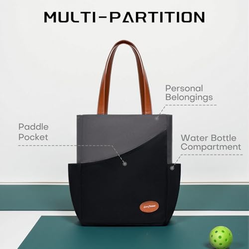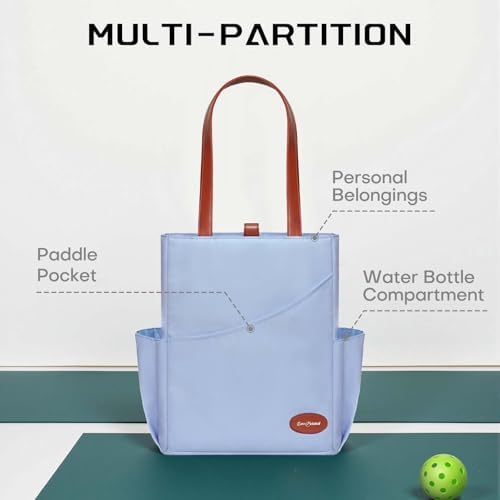 Luzz Pickleball Tote Bag for Women Fashion Sport Tote 2 Paddle Compartment Front and behind Pockets Pickleball Handbag T