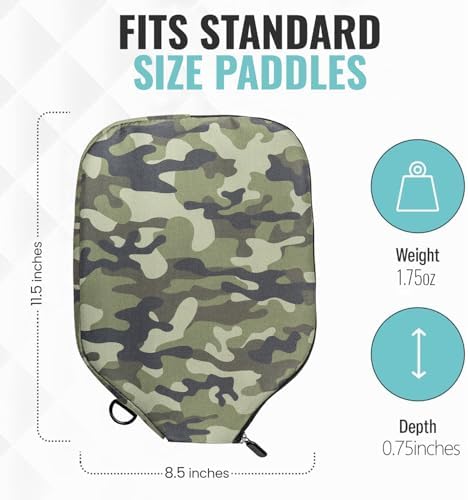 Our premium paddle cover measures 11.5” x 8.5” x 0.75” and weighs 1.75oz, ideal for standard-sized paddles. Perfect for storing one or two paddles, it’s great for players who need quick access to their gear. Compact and lightweight, it fits easily into backpacks, making it travel-ready. Designed for both indoor and outdoor courts, this cover provides a convenient storage solution for active players who want their paddles readily accessible between games.