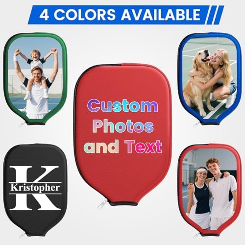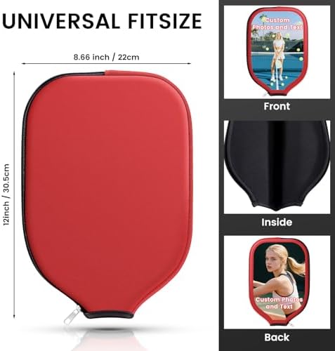 Personalized Custom Pickleball Paddle Covers for Pickleball Players, Zippered Universal Case Racket Sleeve with Photo T