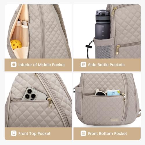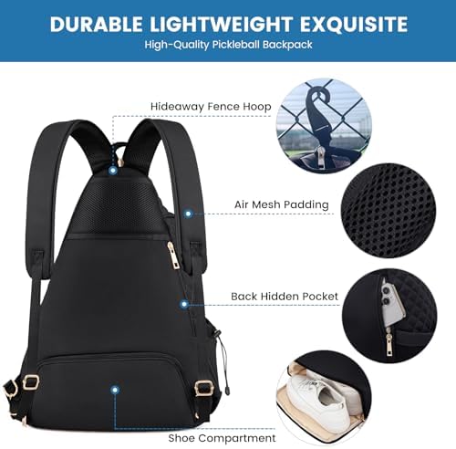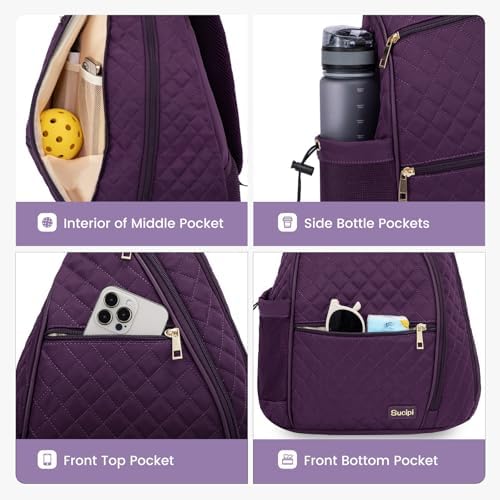 – Main compartment: Can hold up to 4 pickleball paddles and 12 pickleball balls (note: for practical use)