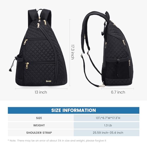 – Tennis racket compatible: Fits 102 or regular-sized rackets, with exposed handle
