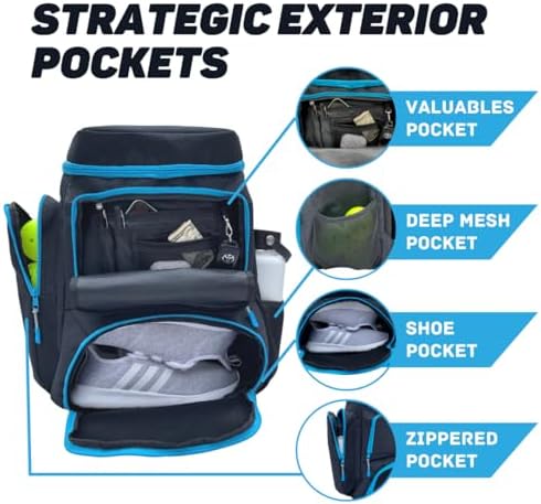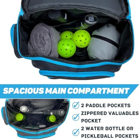 Pickleball Bag for Men and Women – Pickle Ball Backpack – Fits 2 to 4 Paddles – Shoe Compartment, Fence Hook, Storage Po
