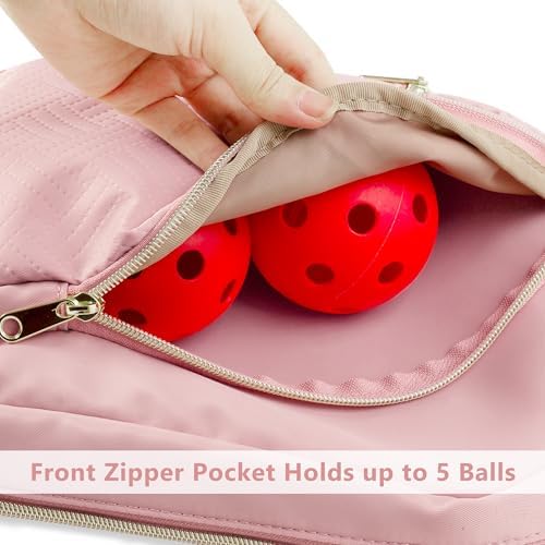 • Front compartment: Can hold up to 5 pickleballs.