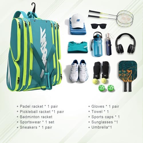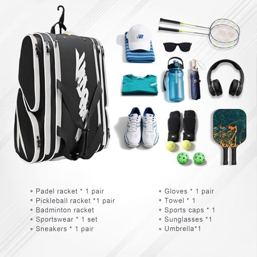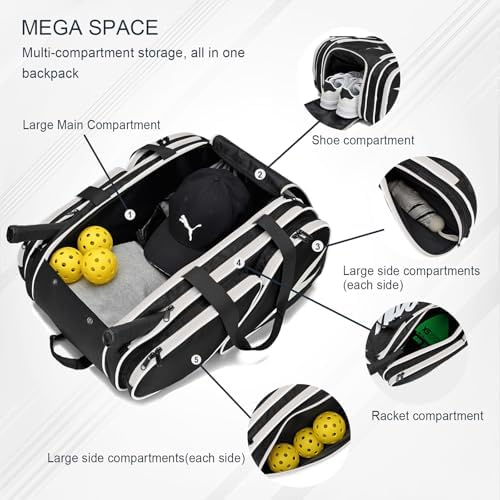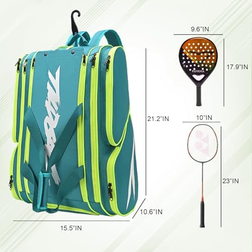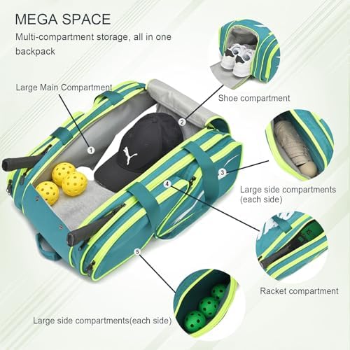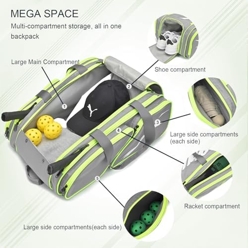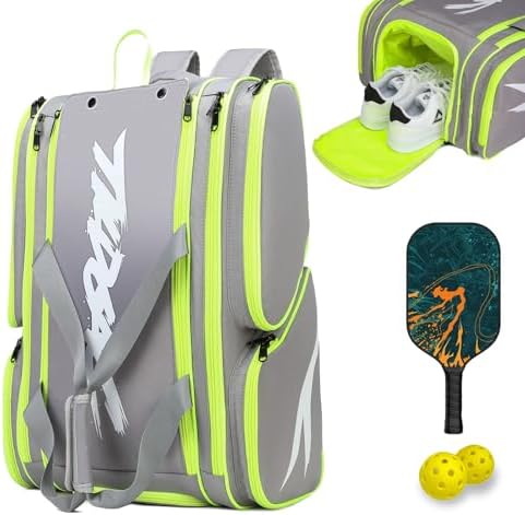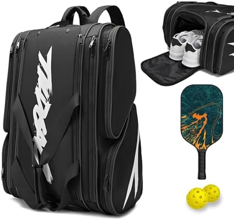 Pickleball Bag – Large Paddle Bag for 4 Paddles & Accessories – Fence Hook, Extra Pockets, Shoe Compartment for Pickleba