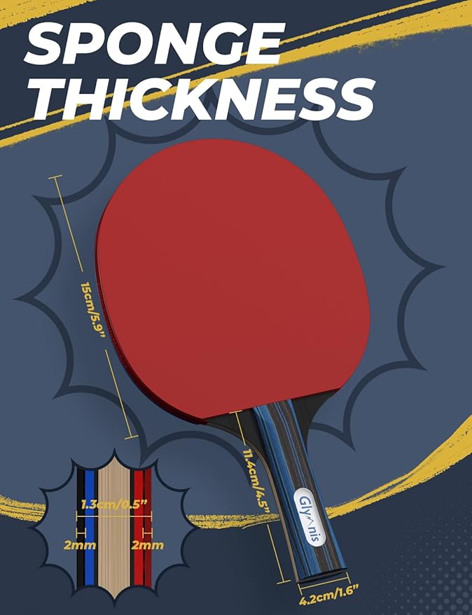 - Premium Quality Racket:This ping pong paddles consists of 7 layers of poplar wood and high elasticity soft sponge with advanced side bands to avoid edge wear; Durable rubber with high quality thickness and balance to improve ball speed, control and rotation