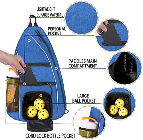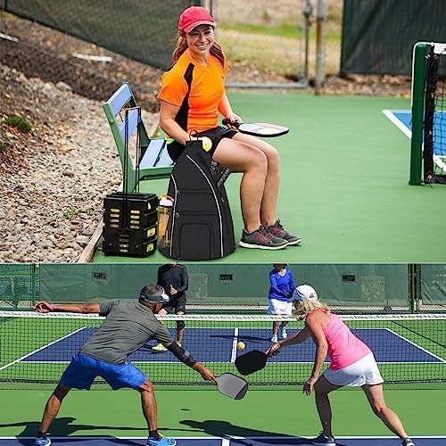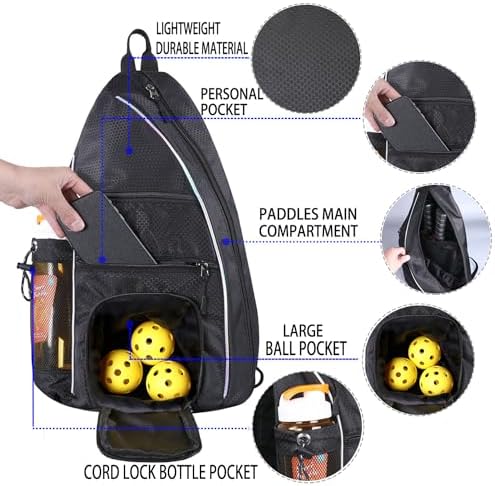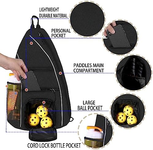– Main compartment: Holds over 6 pickleball paddles or a laptop.