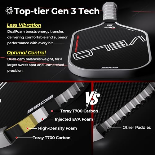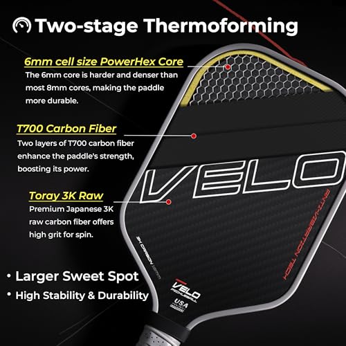 – Why Choose Us?: Our professional thermoformed paddles are crafted with a seamless unibody design. Featuring three layers of carbon on each side (2xT700 + 1xToray 3K) and a 16mm polymer honeycomb core, our paddles increase durability and energy transfer. The dense core prevents crushing and visible wear, ensuring longevity.