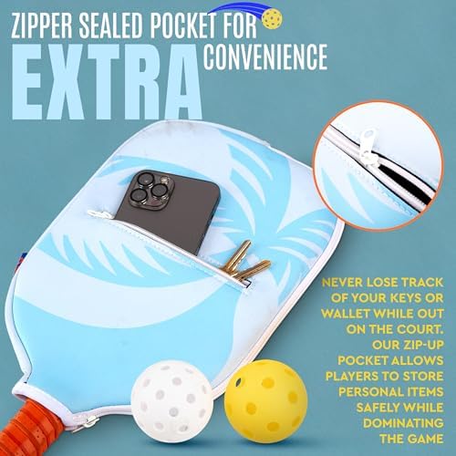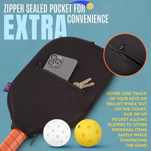 🌟CONVENIENT: Say goodbye to awkward juggling. Our pickleball covers feature a convenient carrying handle for effortless transport to and from the courts. Plus, with a zipper-sealed pocket on the back, you can keep your keys, money, and phone securely tucked away while you focus on dominating the game.