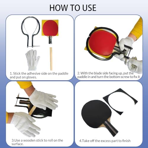 PACKAGE INCLUDED: 1 x table tennis rubber cutting machine, 1 x rubber rolling stick, 1 x pair of cut-resistant gloves, 1 x test rubber sheet.