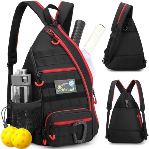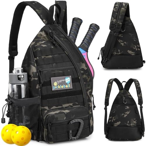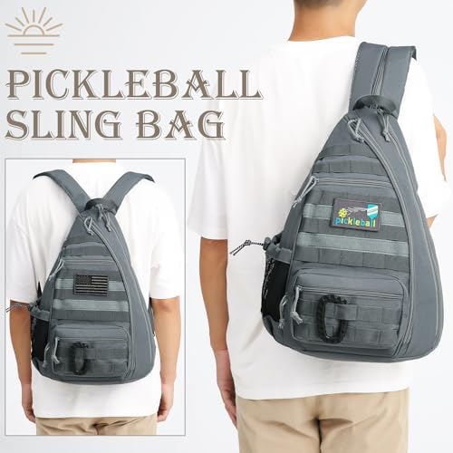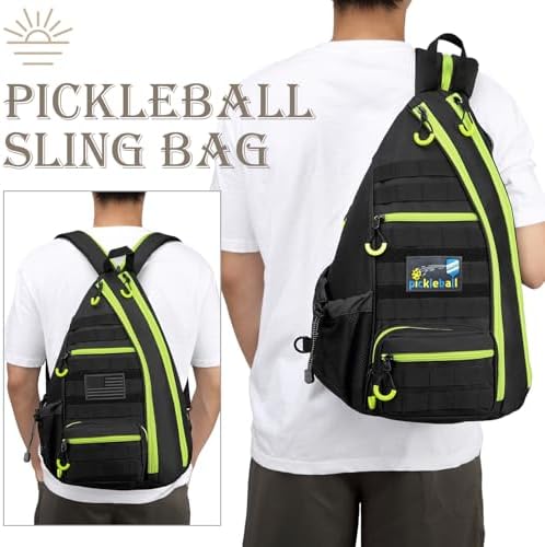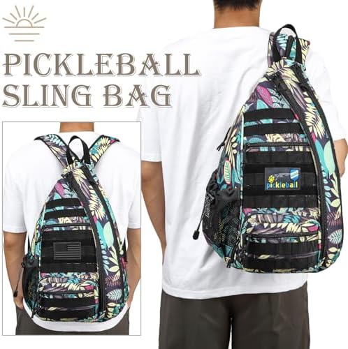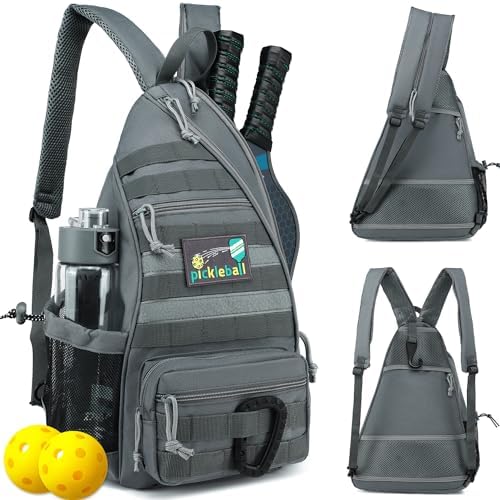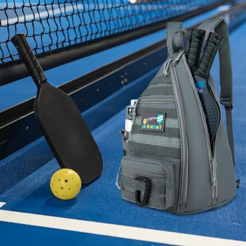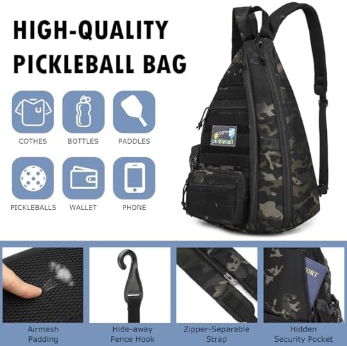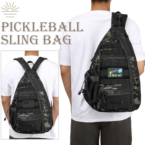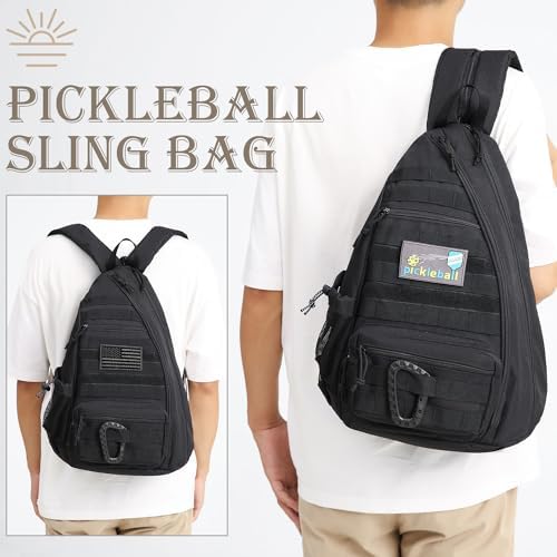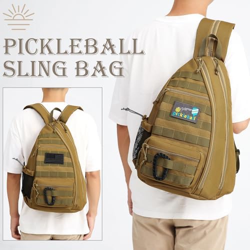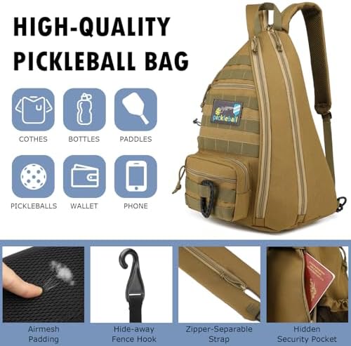 Tactical Pickleball Backpack Brown Women Men Adjustable Sling Bag Fence Hook Water Bottle