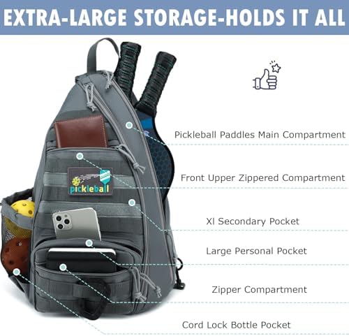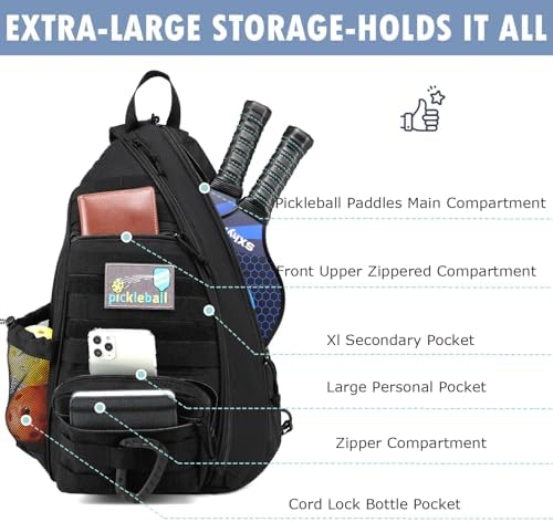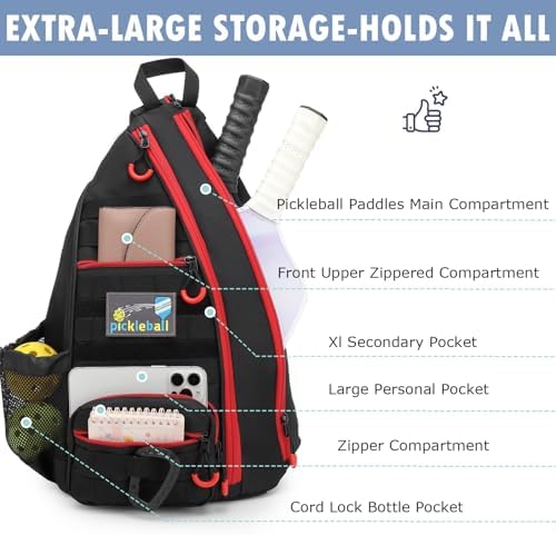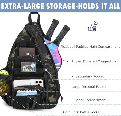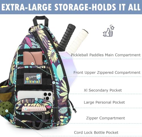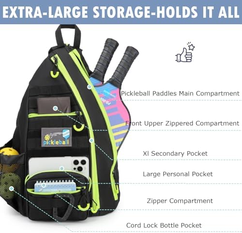 Capacity: Main compartment fits 3 pickleball paddles or 2 tennis rackets. Front pockets accommodate balls, towels, wallets, glasses, keys, and umbrellas.