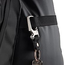 CLIP, HANG & GO – A sturdy built-in carabiner allows you to attach the bag to fences, gates, or hooks, keeping your gear off the ground and within reach. A front elastic loop adds extra storage for an outside paddle or towel.